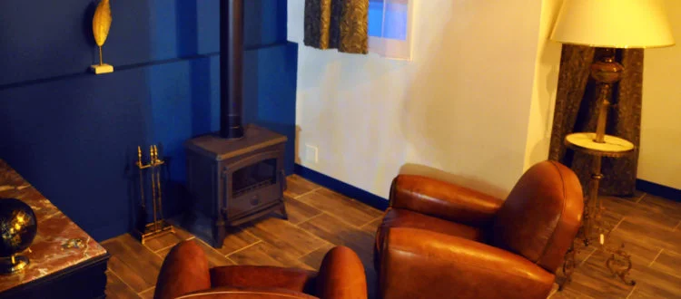 Cette chambre Suite spacieuse et confortable, dispose d’un petit salon avec un poêle à bois, d’une magnifique salle de bain et douche à l’italienne ouverte sur le coin nuit.